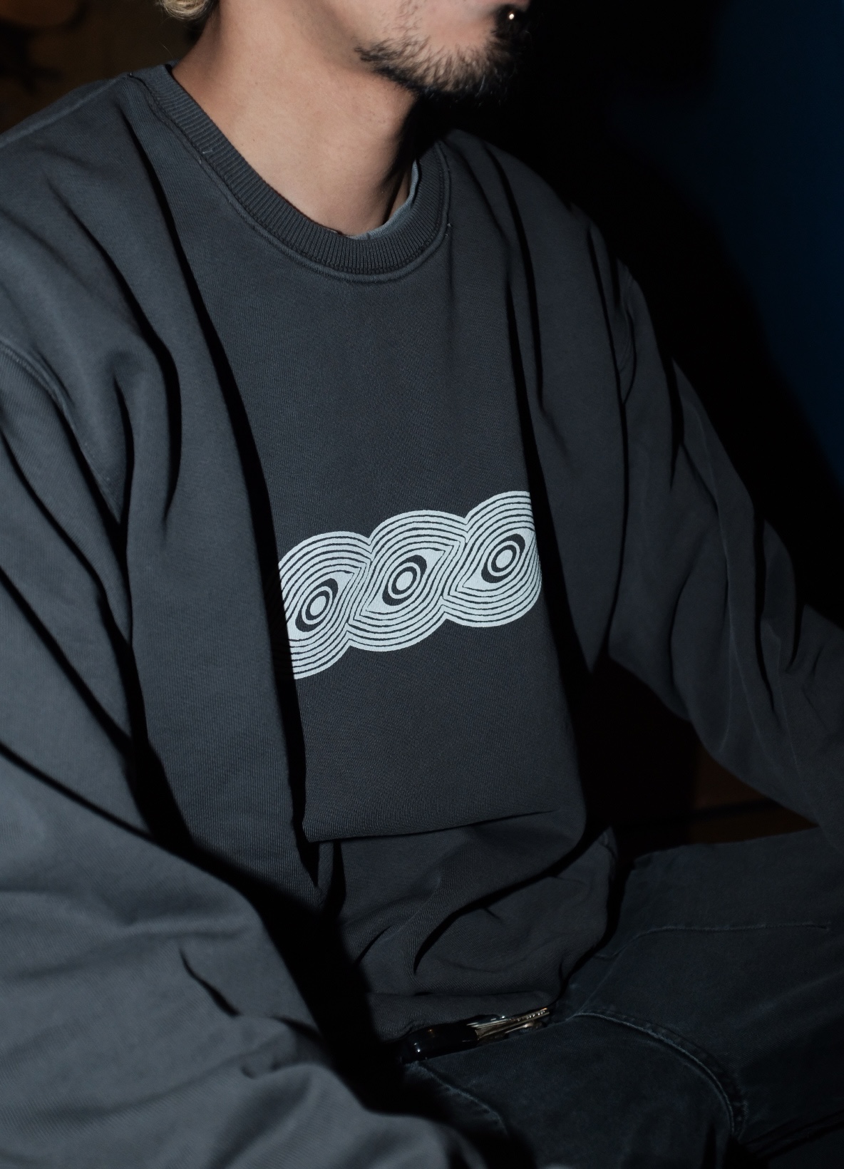 • 顔料染めのボディに一枚ずつ手刷りでプリントしています。