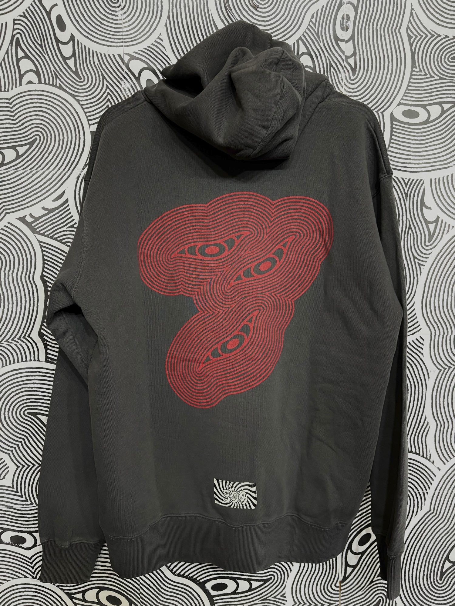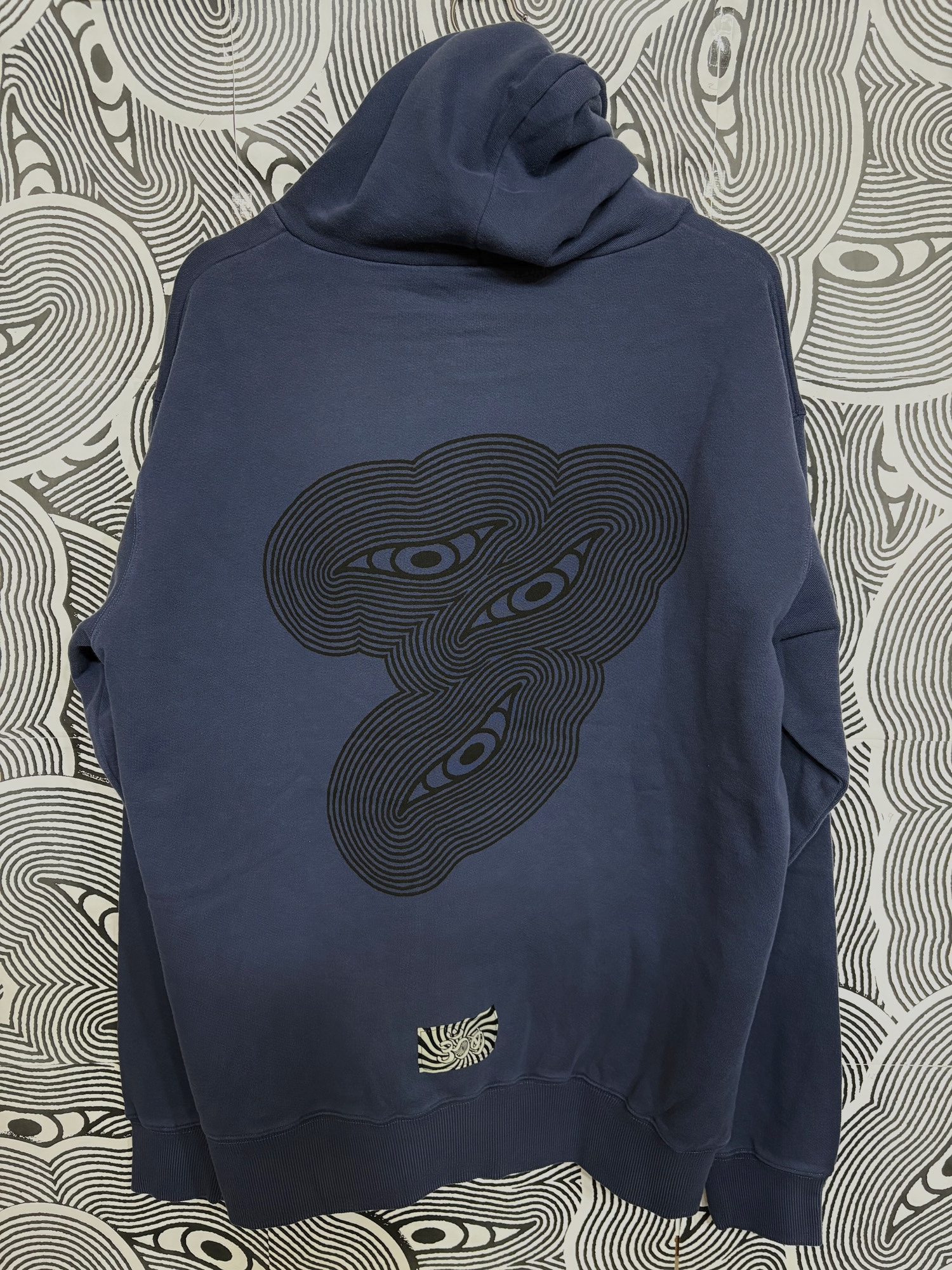 - 顔料染めのボディに一枚ずつ手刷りでプリントしています。