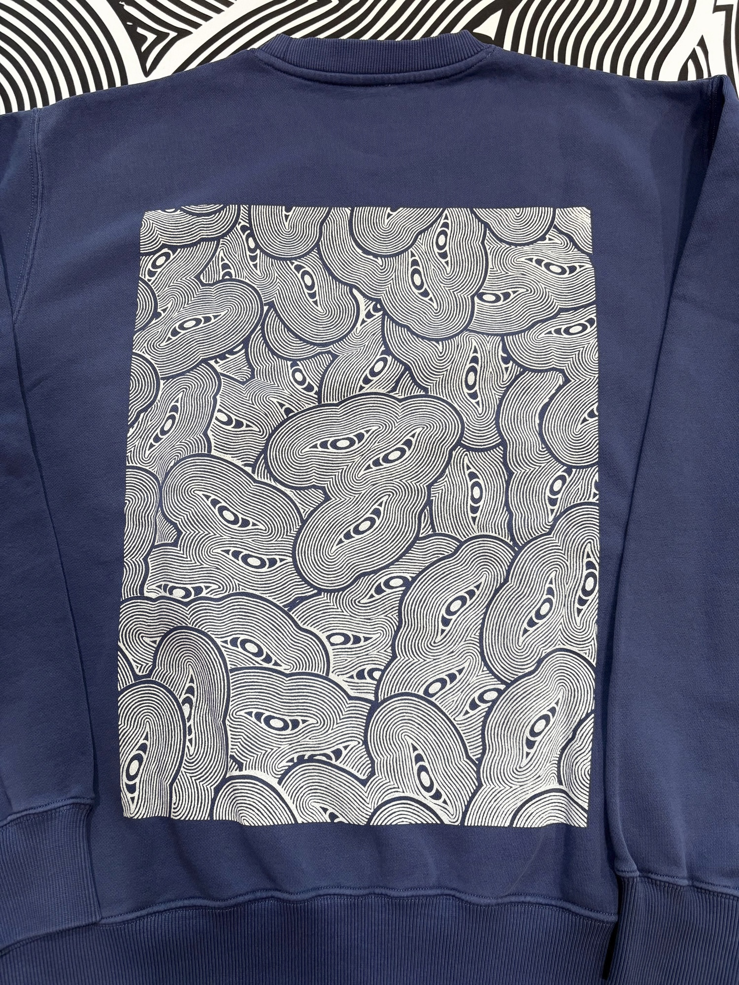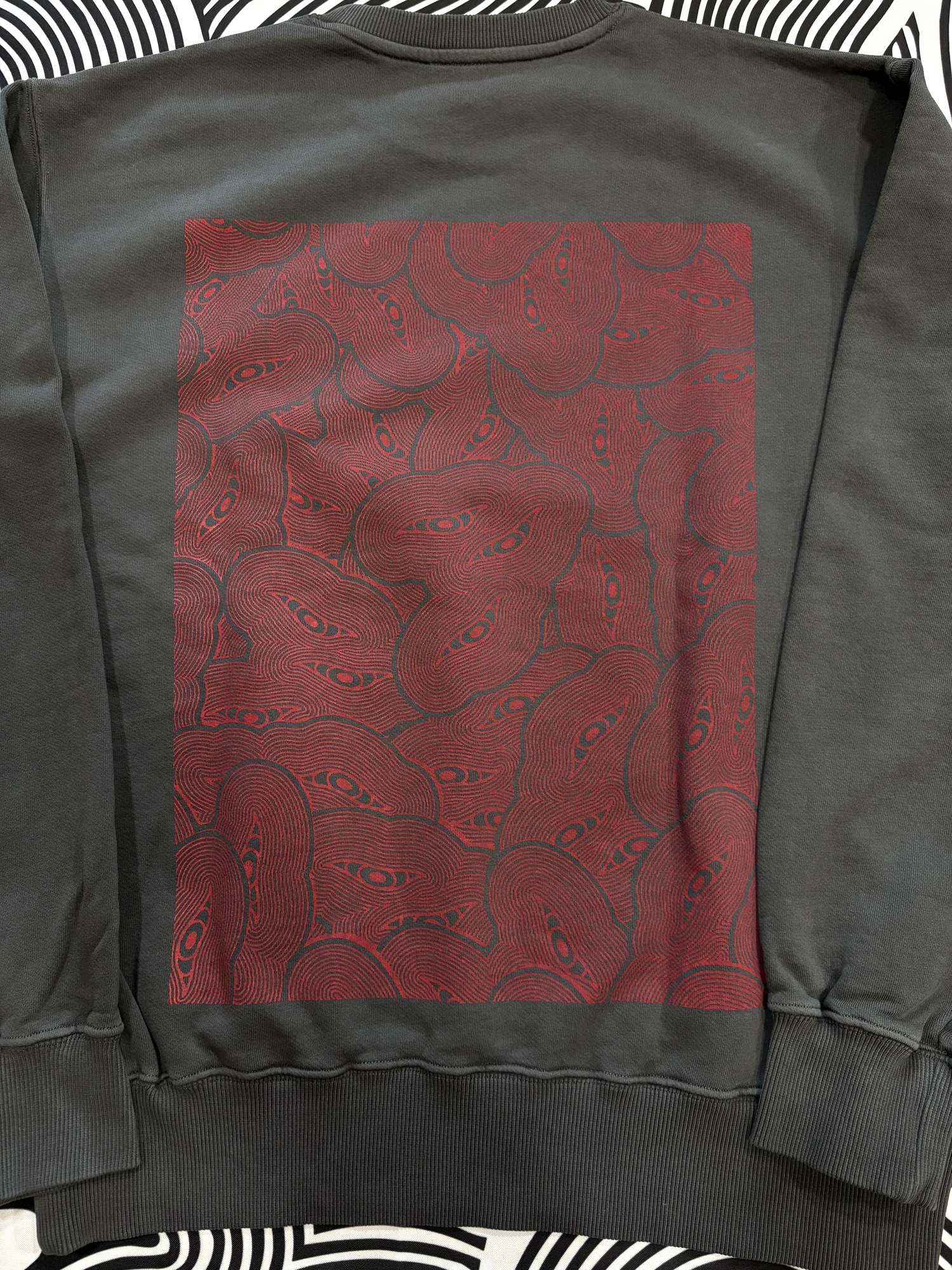 - 顔料染めのボディに一枚ずつ手刷りでプリントしています。